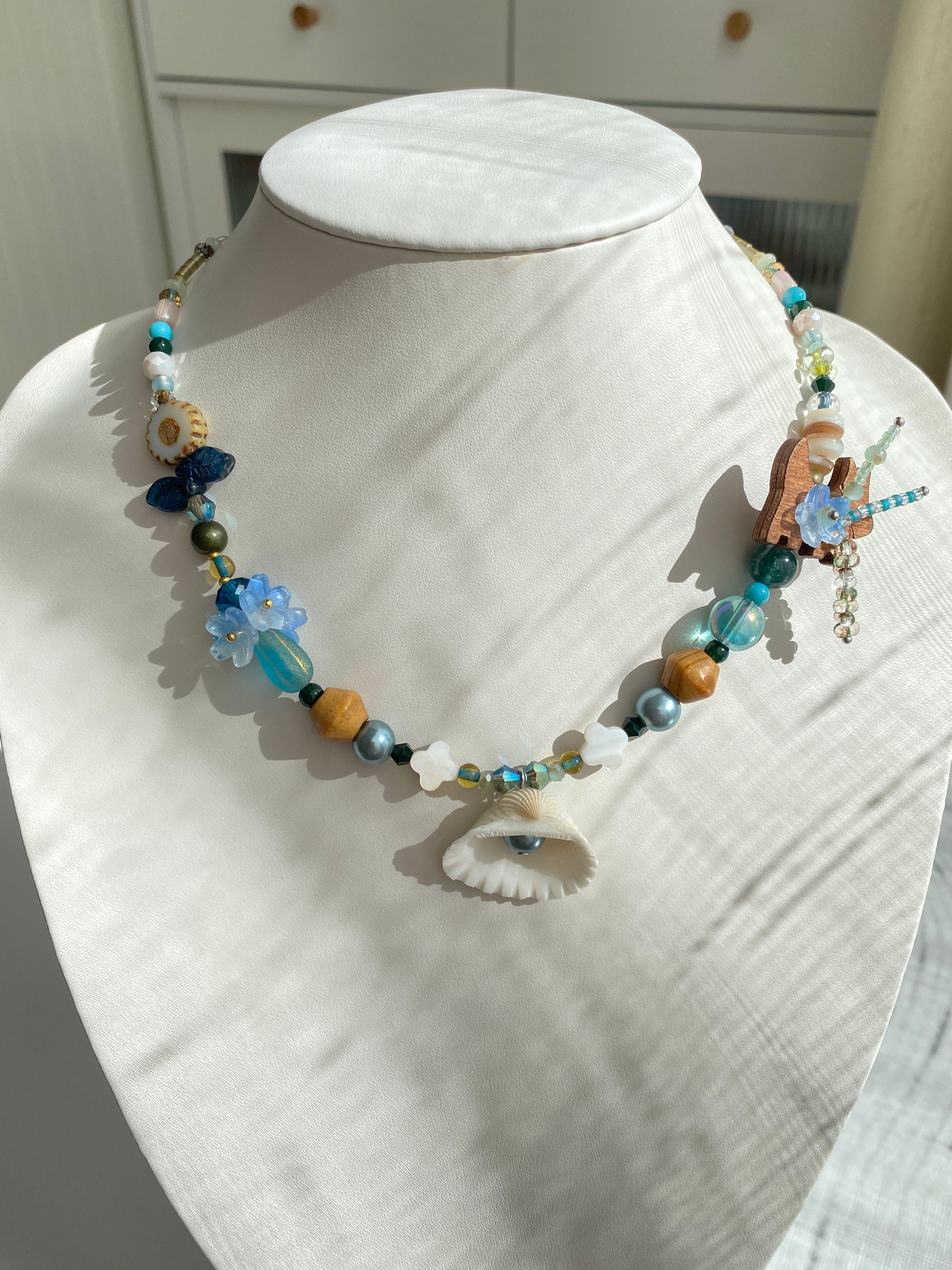 Materials: Handmade glass beads, stainless steel metal, Natural seashell