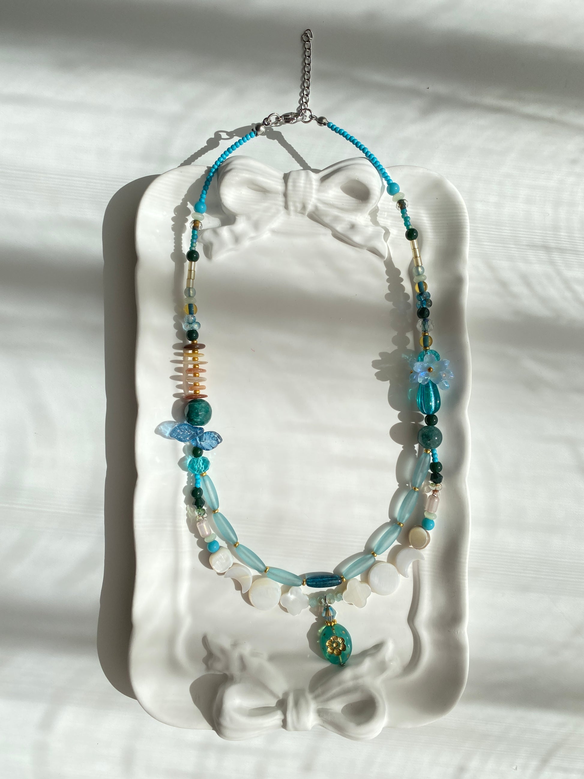 Materials: glass beads, stainless steel metal, Natural seashell
