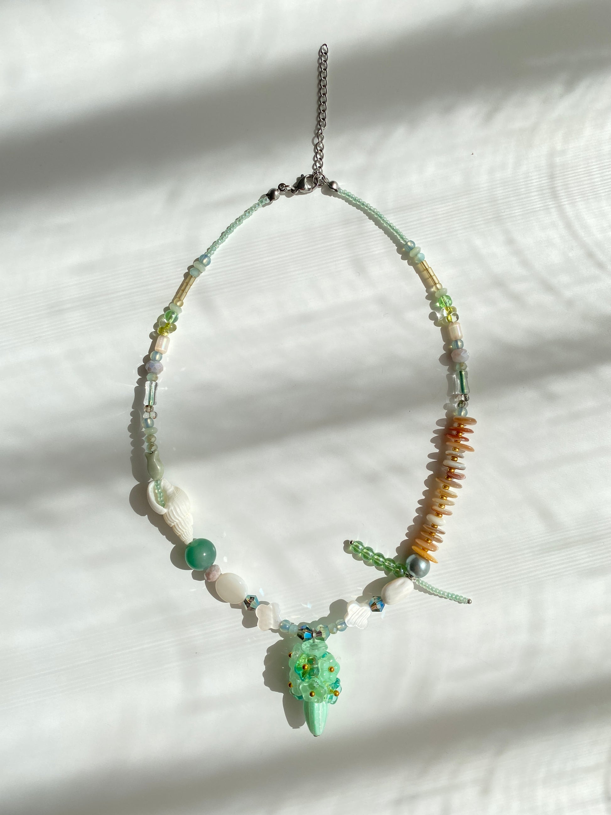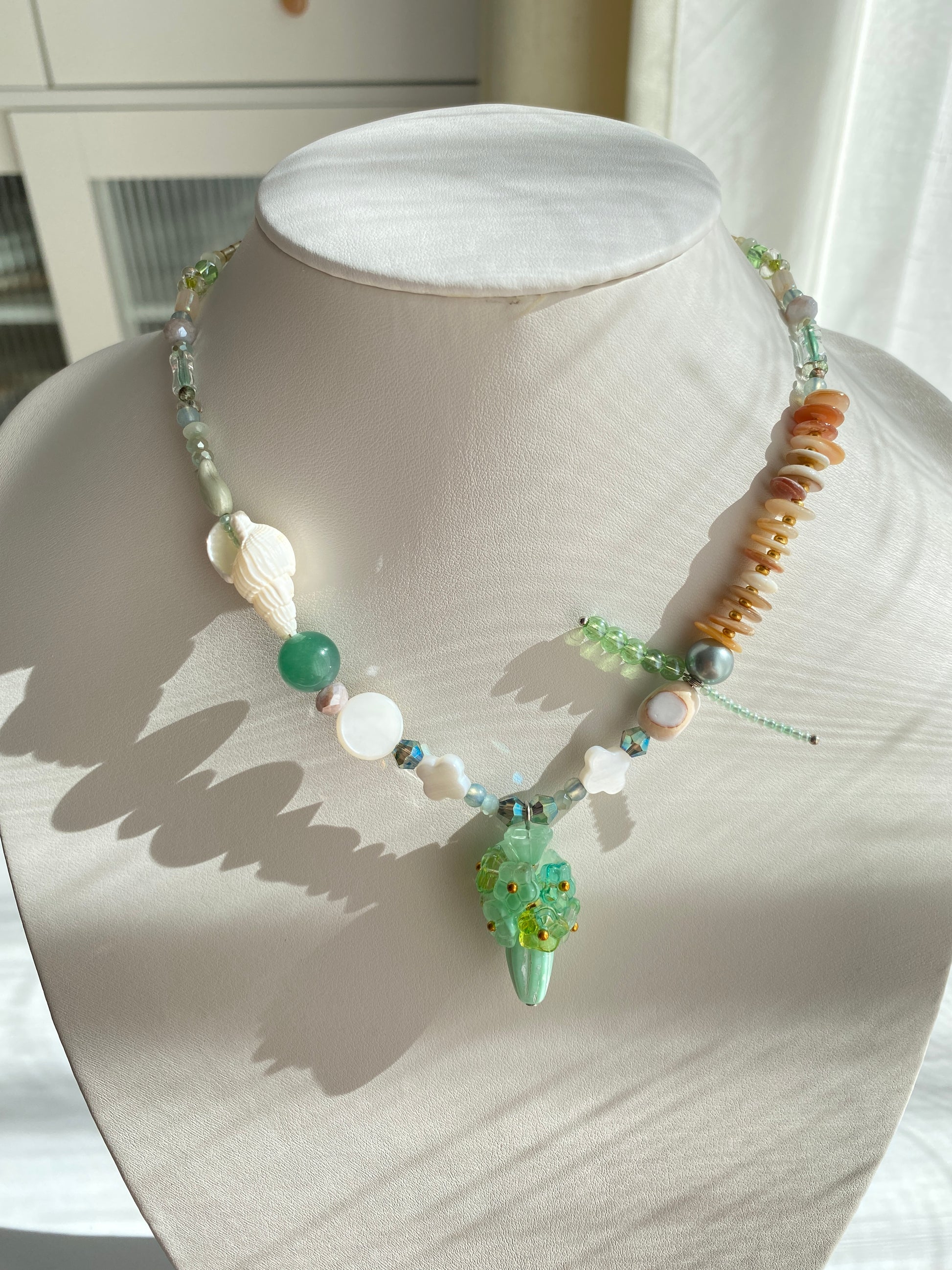 Vacation-style Necklace with Natural Seashell, Conch Elements & a Plump Bouquet Pendant