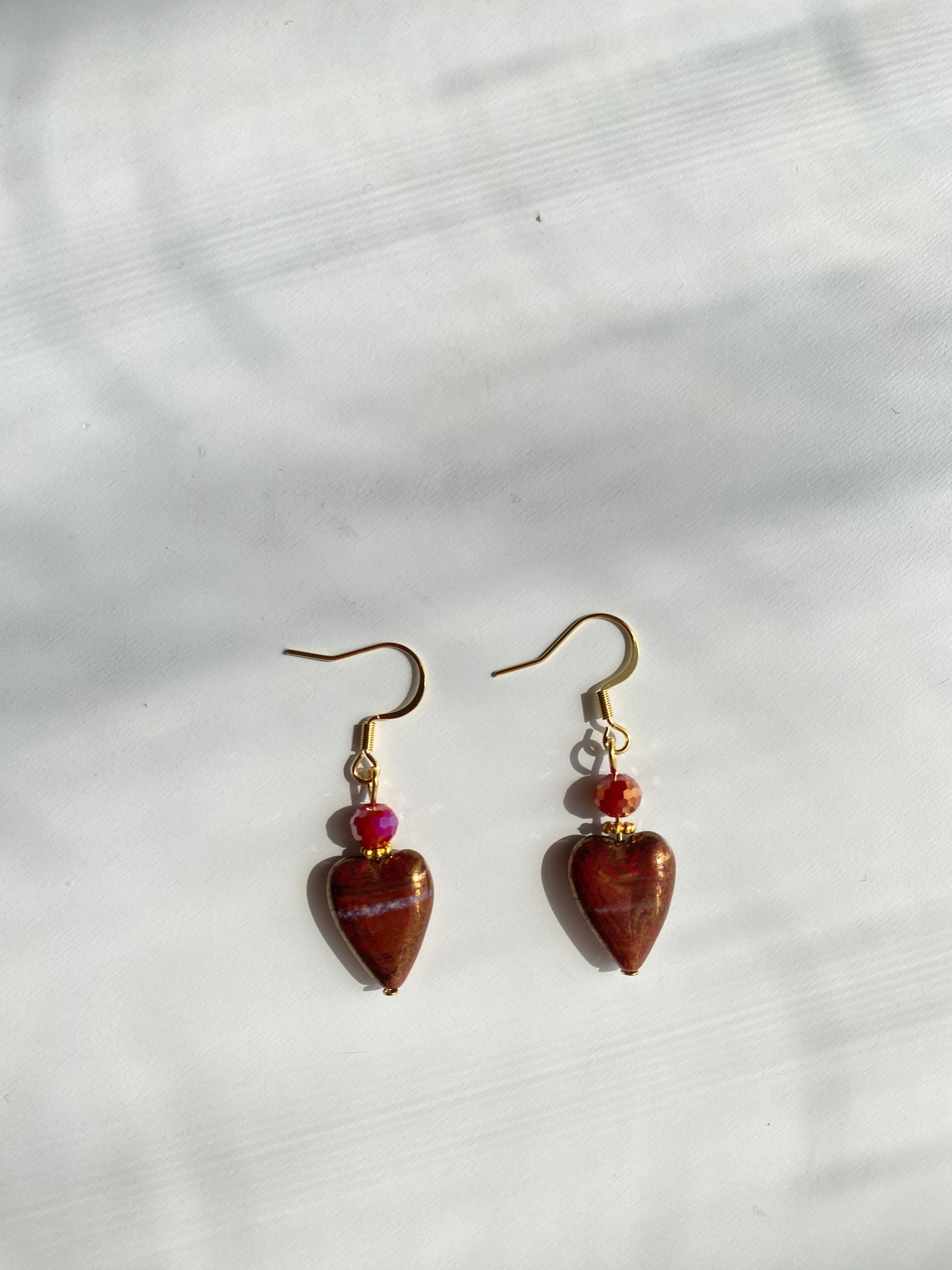 Burgundy-toned hearts paired with sparkling faceted red beads—transports you back to the 1980s in an instant.